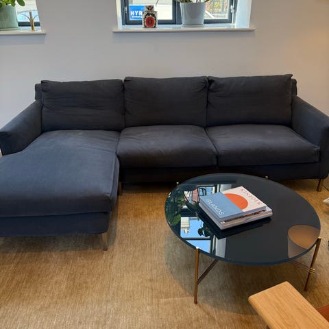 Den er ca. 20 år gammel, men er på ingen måde faldet sammen. Sofaen er meget komfortabel. En rigtig klassisk Eilersen flydersofa.