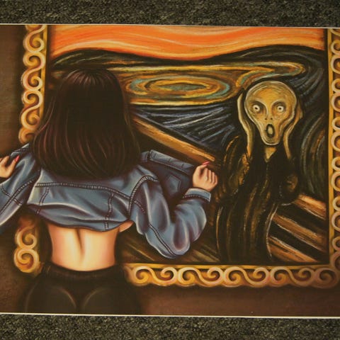 Meget slidt, med flere lukkede rifter, pletter og to pletter maling. Bør indrammes. Ikke signeret, men sandsynligvis af Yukari Ochiai. Plakaten måler 30,5 x 58,5 cm
