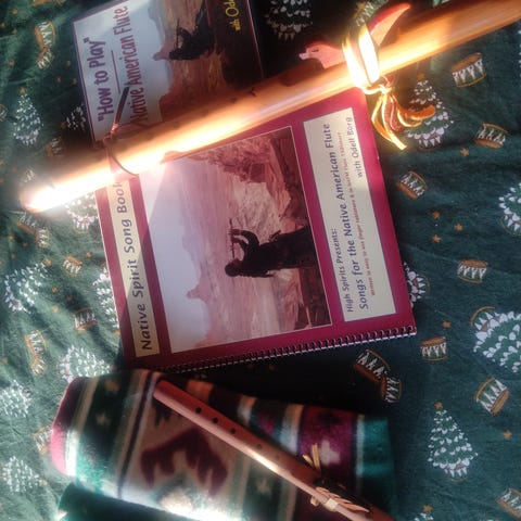 Træfløjte blå og rød mønstret