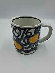 Sættet består af keramiske vaser og skåle med dekorationer af fugle og planter. Toneskalaen er varm.