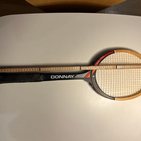 Donnay Björn Borg tennisketcher i træ med brun grebsomvikling. Klassisk træketcher med strenget hoved og traditionel rammeprofil. Egnet som samlerobjekt, dekoration eller til let brug på bane efter behov.