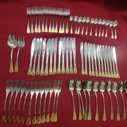 Sættet til hovedretten (kniv, gaffel, ske) er fuldstændigt (se billeder).