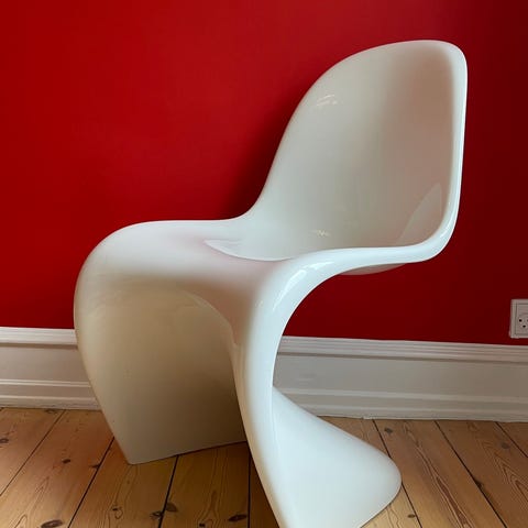 S-Chair designet af Verner Panton, lavet af polypropylen, produceret i Schweiz, perioden 2000–2010, mål: dybde 58 cm, højde 82 cm, bredde 50 cm, i god brugt stand med mindre slid./ Klik på den blå "gå til varen" knap, for at købe eller byde på denne vare. Den samlede pris vil blive vist inden du afgiver dit bud.
