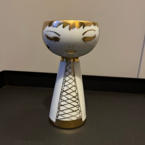 Figurativ lysestage af tysk porcelæn og Messing fra Thüringen, dateret det sene 19. århundrede, højde 19 cm, bredde 7 cm, dybde 2 cm, vægt 281 g, god stand med let forgyltnings-slitage. Klik på den blå "gå til varen" knap, for at købe eller byde på denne vare. Den samlede pris vil blive vist inden du afgiver dit bud.