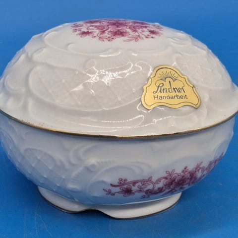 Der tilbydes en højkvalitets porcelænskål med fod af Dresdner porcelæn og med rig håndmaling.