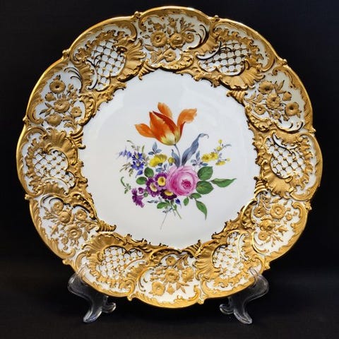 Meissen gennembrudsskål – håndmalet og forgyldt – det 19. århundrede