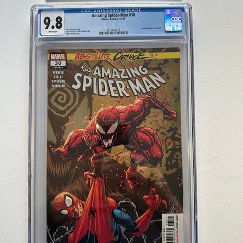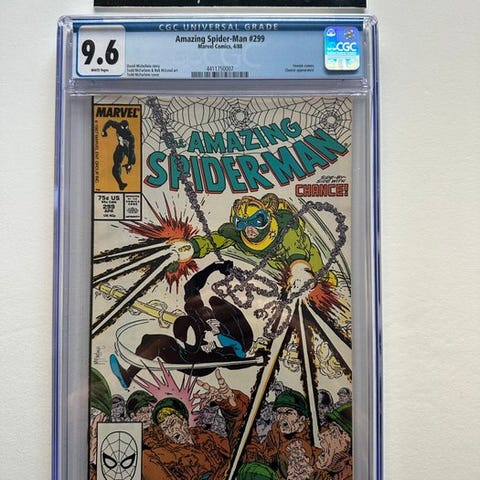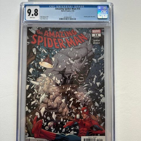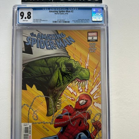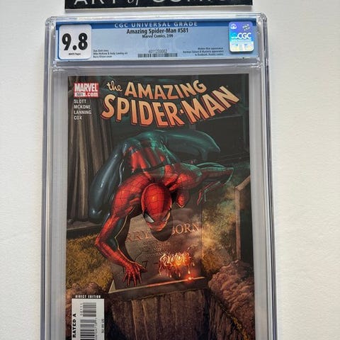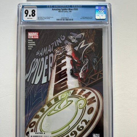 The Amazing Spider-Man, første udgave CGC 9.8 tegneserie på engelsk, udgives af Marvel Comics i 2009, udgave #590 – Fantastic Four & Looter Appearance, kunstnere Barry Kitson, Mark Farmer og Dan Slott, hæftet binding, Mint-tilstand, 1 genstand. Klik på den blå "gå til varen" knap, for at købe eller byde på denne vare. Den samlede pris vil blive vist inden du afgiver dit bud.