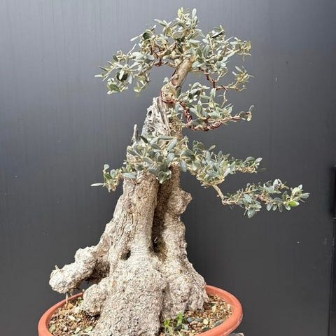 Oliventræ bonsai (Olea europaea), dobbeltstammet stil, ca. 10 år gammel, fra Spanien. Klik på den blå "gå til varen" knap, for at købe eller byde på denne vare. Den samlede pris vil blive vist inden du afgiver dit bud.