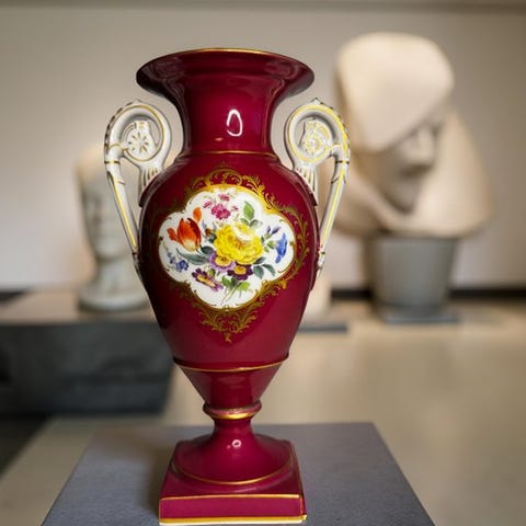 Meget sjælden og flot tysk berømt Meissen-familier&rose porcelæns stor vase fra det 20. århundrede! Der er Meissen blå sværd-mærke i bunden!