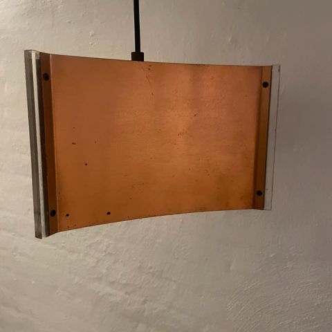 Anden arkitekt, Retro fra ca 1960, hængelampe, Kobber og sort m runde glas ca 30 cm bred