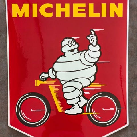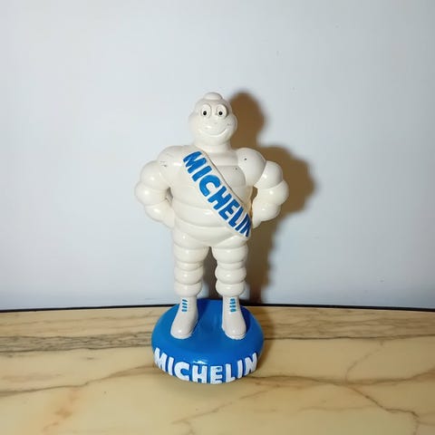 Bibendum-figur fra det berømte mærke Michelin, ny og med originalemballage, egnet til alle sports- eller motorrumsmiljøer.