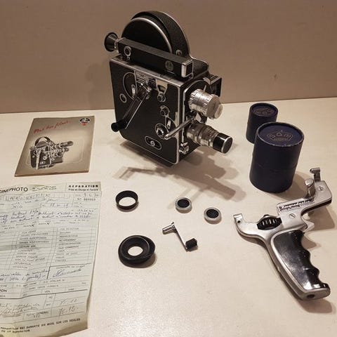 Paillard Bolex H16 Reflex med tre linser (Yvar 1:2,8 f=16 mm, Switar 1:1,4 f=25 mm, Bell & Howell 1:3,5 f=75 mm); vejmotor i funktion, serienummer 88223, filmtype 16 mm, anslået periode 1950, fysisk tilstand Rimelig, funktionel tilstand Testet og i gang, C-mount. Klik på den blå "gå til varen" knap, for at købe eller byde på denne vare. Den samlede pris vil blive vist inden du afgiver dit bud.
