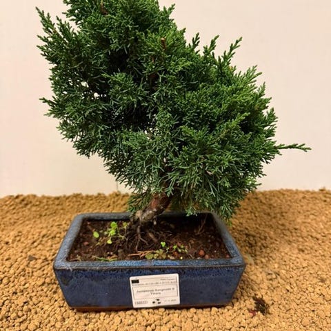 Juniperus-bonsai Procumbens i Cascata-stil, cirka 15 år gammel, stamme 4 cm, træhøjde 25 cm, pot højde 12 cm, pot 20×20 cm, oprindelse Portugal. Klik på den blå "gå til varen" knap, for at købe eller byde på denne vare. Den samlede pris vil blive vist inden du afgiver dit bud.