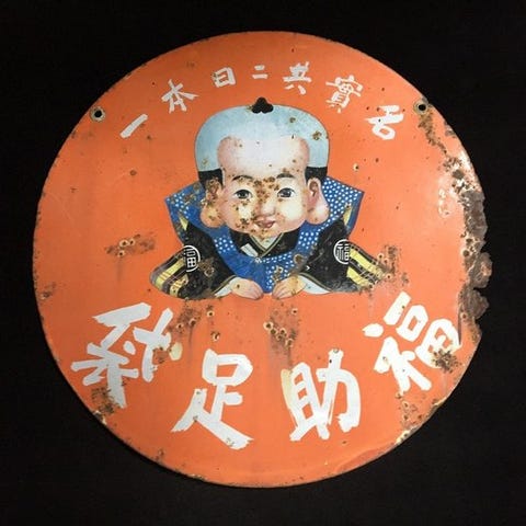 Showa Retro Vintage Kinno Ushiroari Emaljeskilt, udendørs skilt, termitekontrol, virksomhedsreklameskilt, Vintage