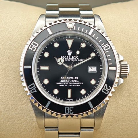 Rolex Sea-Dweller 4000, reference 16600, stålur 40 mm, automation, herremodel fra 2000–2010, meget god stand med repareret bezel, originalt armbånd og spænde, ingen æske eller papirer, forsendelse forsikret. Klik på den blå "gå til varen" knap, for at købe eller byde på denne vare. Den samlede pris vil blive vist inden du afgiver dit bud.