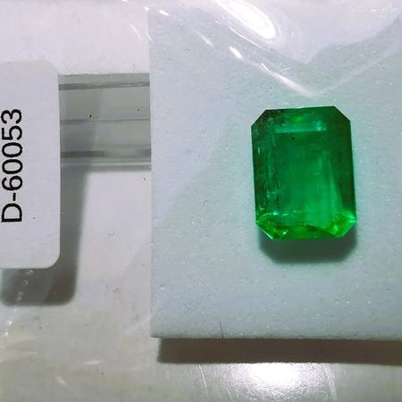 Naturlig smaragd, 2,30 ct, en enkelt rektangulær smaragd, farve grøn, transparent, behandling F2 – moderat olie, oprindelse Zambia, laboratorierapport IGE nr. D-63157. Klik på den blå "gå til varen" knap, for at købe eller byde på denne vare. Den samlede pris vil blive vist inden du afgiver dit bud.