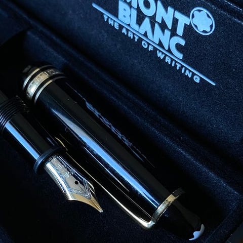 Montblanc Meisterstuck fyldepen i ædel sort resin med forgyldte indlæg.