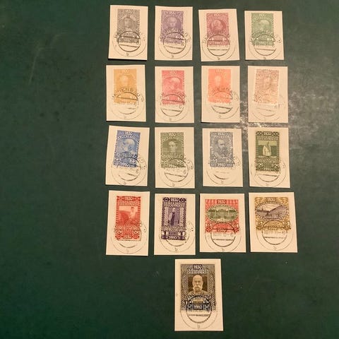Østrig, Jubileumsserie: ugummet bevis uden lim som udgivet, med certifikat Soecknick af 2016, Michel 139/144 og 146/149 xzU, fra 1908. Klik på den blå "gå til varen" knap, for at købe eller byde på denne vare. Den samlede pris vil blive vist inden du afgiver dit bud.