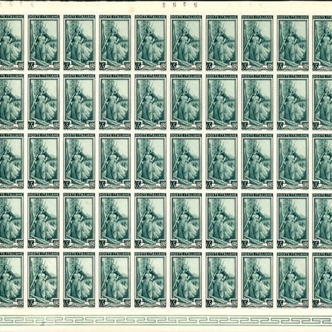 Stribe på 10 hjørner af et ark med nummer på tavlen, med integreret gummi, hjørne i nederste hjørne, sjælden, specialiseret Sassone, 1250,00 euro+