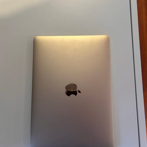 Apple MacBook Retina 12" bærbar computer med 12" skærm. Modellen på billederne kører macOS Monterey og har Retina-skærm samt indbygget tastatur med baggrundsbelysning og pegefelt. Farven fremstår som guld/rosa-tonet aluminiumskabinet. Velegnet til almindelige computeropgaver som tekstbehandling, internetbrug og medieafspilning. Oplader tilsluttes via USB-C-port i siden. Maskinen er kompakt og let, hvilket gør den egnet til brug på farten, studier eller hjemmebrug.