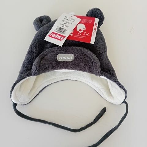 Hue, med øreklapper, Reima, str. 110, Ny hue fra Reima med øreklapper i str. 52-54 (5-7 år) i bomuld. Der står navn i men huen blev aldrig brugt (havde desværre glemt den lå i skabet).