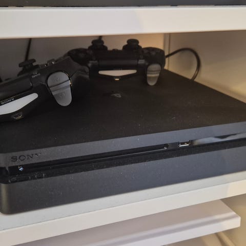 Sony Playstation 4 Slim konsol 1 TB med 2 kontroller , 2 spillere og kabler også væg beslag … meget fint stand