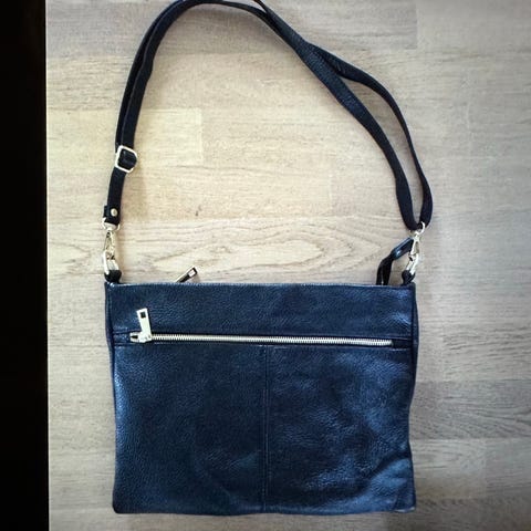 Elegant Sézane dametaske i sort læder med lynlås og skulderrem. Der er dustbag og mærker/certifikat med til.