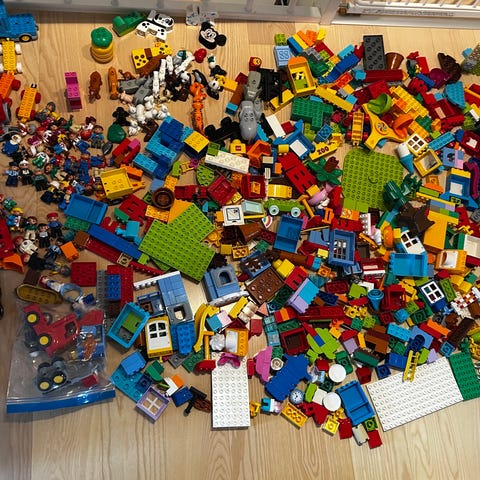 LEGO DUPLO klodser og figurer blandet.