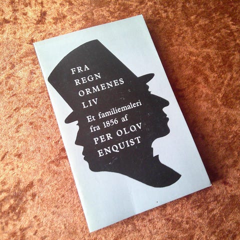 Per Olov Enquist "Fra regnormenes liv" bog. Dansk udgave udgivet på forlaget Samleren. Bogen er en familieroman fra 1876 og er trykt som klassisk tekstbog i hardback/indbundet udgave med smudsomslag. Velegnet til læsere af nordisk litteratur og samlere af værker af Per Olov Enquist.