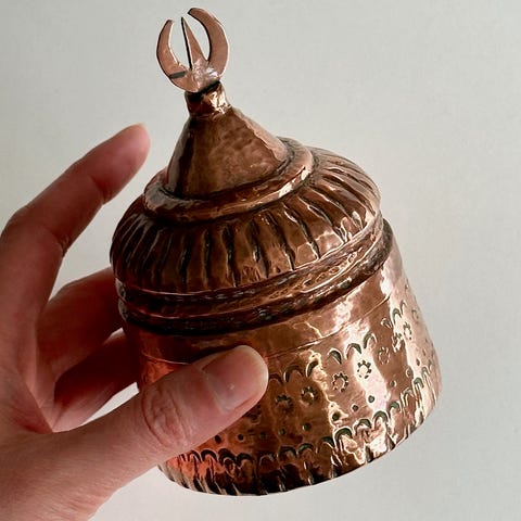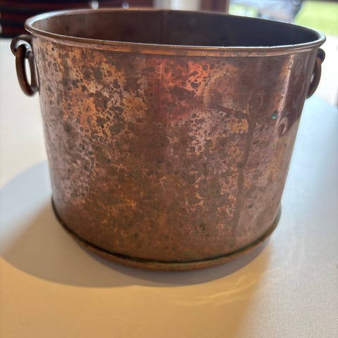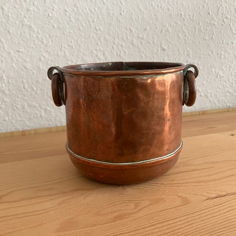 Stor antik kobber krukke, urtepotteskjuler på fine fødder.