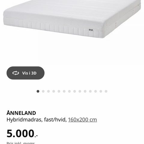 IKEA ANNELAND madras i størrelsen 140x200 cm i hvid. Madrassen er en hybridmadras med polstret top og quiltet overflade. Velegnet til dobbeltseng eller trekvartseng. Betrækket er lys/hvidt med synlige pletter fra børn der har sovet i den, som fremgår af billederne. Bemærk betræk kan lynes af og vaskes. Kan anvendes som almindelig sengemadras, gæstemadras eller i sommerhus. Byd gerne.