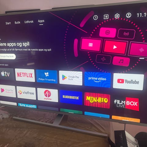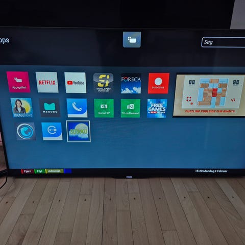 Philips fladskærms-tv med fjernbetjening. Tv’et har flere HDMI-indgange, USB-port, netværksstik, optisk lydudgang samt tilslutning til antenne og satellit. Velegnet til brug med eksterne enheder som spillekonsoller, medieafspillere og lydanlæg. Tv’et har været vægmonteret hvorfor foden er ikke følger med. Fjernbetjeningen har taster på begge sider, herunder fuldt tastatur på bagsiden til nem indtastning af tekst i menuer og apps. Fjernbetjeningen er desværre flækket bagpå efter at være tabt på gulvet. Fjernbetjeningen virker som den skal, men man kan mærke skaden når man har fjernsynet i hånden.