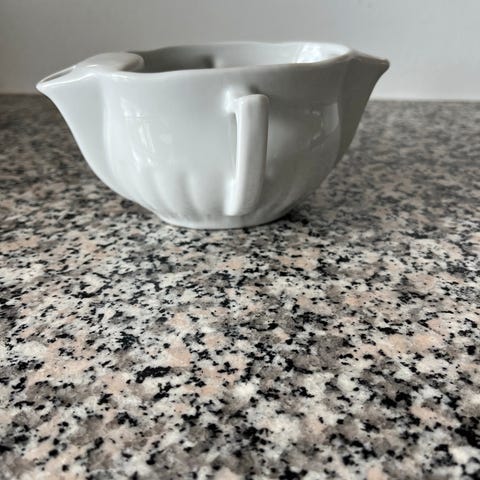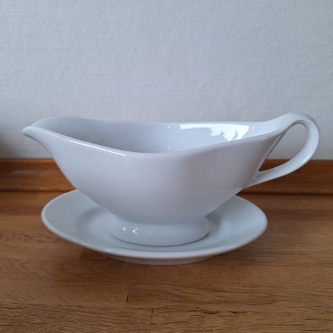 Sælger denne Pillivuyt sovsekande med underskål. Det er brugt 2 gange og fremstår derfor helt som ny.