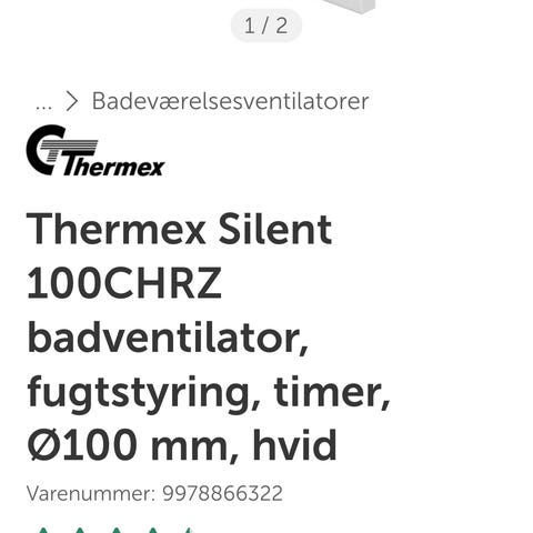 Thermex fugtstyret ventilator NY , nypris 1799kr
