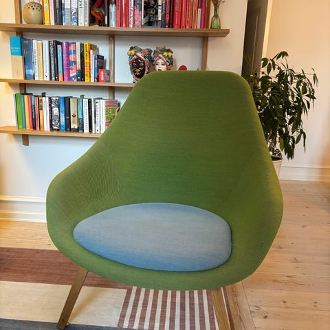 Hay AAL82 Soft lounge i støvet grønt stofpolstring med lyse træben. 5 år gammel. Næsten ikke brugt, men har dog fået lidt slid på benene. Nypris over 7000 kroner - se kvittering. Kan hentes på Nørrebro