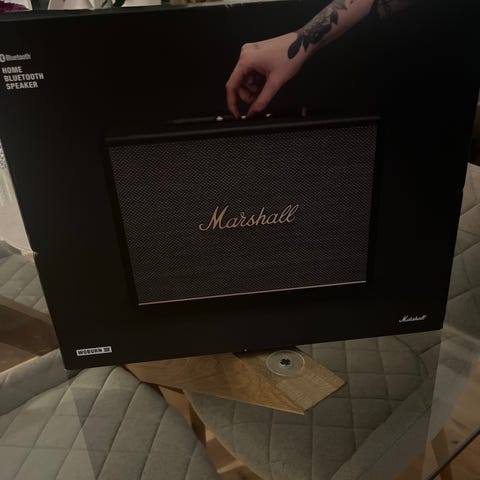 Marshall wobrum Bluetooth højtaler den den største model man kan få den spiller virkelig godt der kan indstilles bas og diskant mange forskellige tilslutningsmuligheder så lyslederkabel