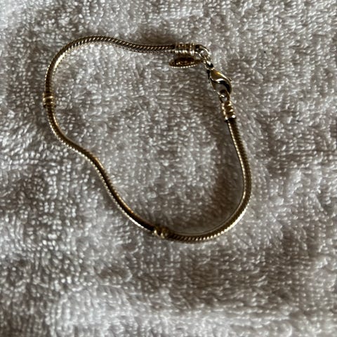 Armlænke, forgyldt, Pandora copi, Nyt flot armlænke Pandora copi med fine glascharms samt forgyldt firekløver med perle