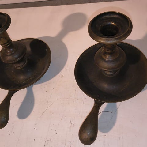 Malm lysestager på ca. 11 cm i højden. Klassisk form med rund fod og drejet skaft. Velegnet til almindelige stagelys. Sælges som sæt af to lysestager.