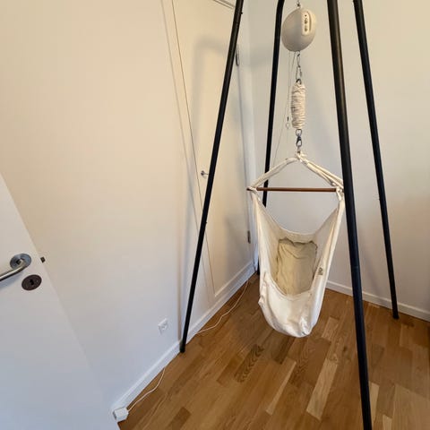 Moonboon motor/Nonomo slyngevugge med stativ cremefarvet bomuld