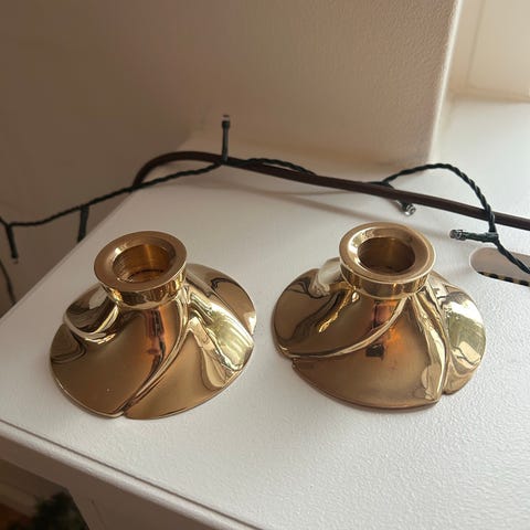 Flotte - og særdeles nypudsede - nagel messingstager fra Stoff. 3 stk. sælges samlet.