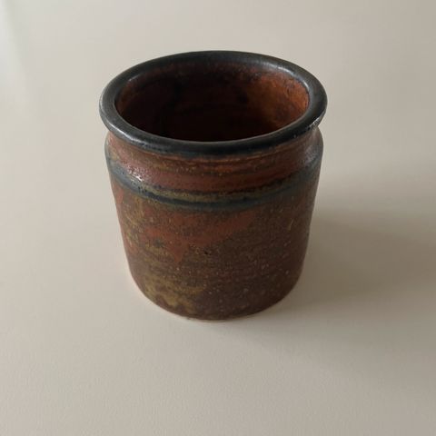 Sort uglaseret lerkande med tre ben, hældetud og hank, formgivet af Hans Nielsen Buch