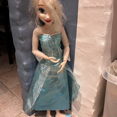Dukke Elsa fra Frost nærmest som ny og med oprindeligt tilbehør. Ca. 25 cm. høj. Fra dyre- og røgfrit hjem