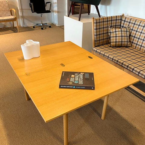 Bordet er designet af Børge Mogensen og produceret hos Fritz Hansen.
