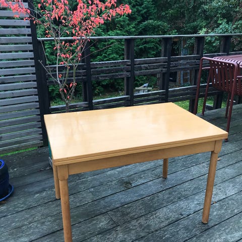 Praktisk og gennemtænkt konstruktion, hvor bordpladen kan vendes, så overfladen bliver i dobbelt størrelse.