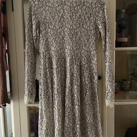 Kjolen er en blondekjole med lange ærmer samt elastik i taljen.