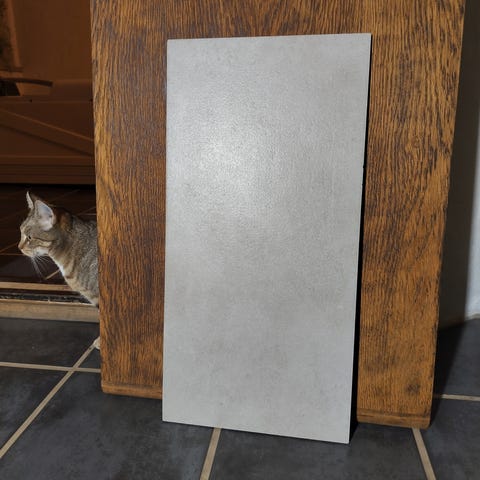 Mørkegrå kvadratisk flise. Overfladen fremstår jævn med let spil i farven. Egnet til brug, hvor der ønskes en neutral, mørk flade, eksempelvis gulv eller væg i bolig, bryggers eller lignende. Leveres som plane plader stablet på paller, klar til videre tilskæring og montering efter behov.