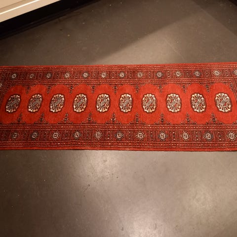 Ilva tæppe løber i rødlig farvetone med orientalsk inspireret mønster. Tæppet er aflangt og egner sig som løber i gang, entré eller andre smalle rum. Velegnet til brug på trægulv eller andre hårde gulvtyper.