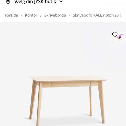 Pænt skrivebord fra jysk i lys eg med god rummelig skuffe. Købt for ca 1,5 år siden, fårs stadig i jysk til 1899kr.