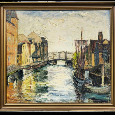 Oliemaleri, Lang, motiv: Andet, stil: Naturalistisk, b: 40 cm. h: 34 cm., Motiv Nyhavn, købt i 1966, målene er uden ramme, helt andet maleri uden ramme, kan sendes