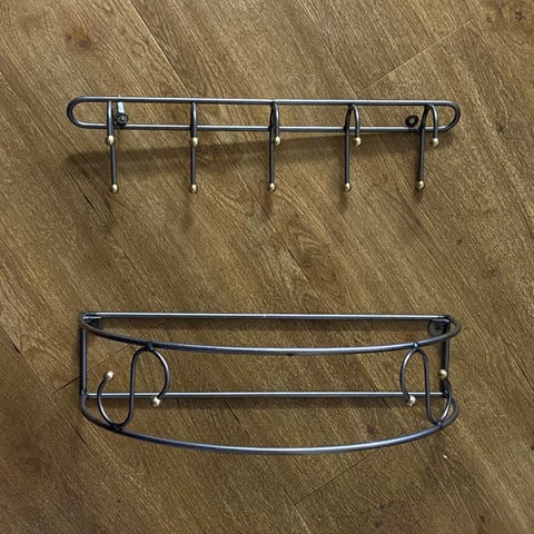 De stikker 22-22,5cm ud fra væggen og er perfekt til at hænge bøjler på.